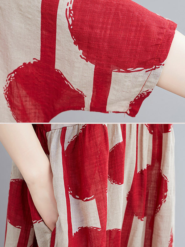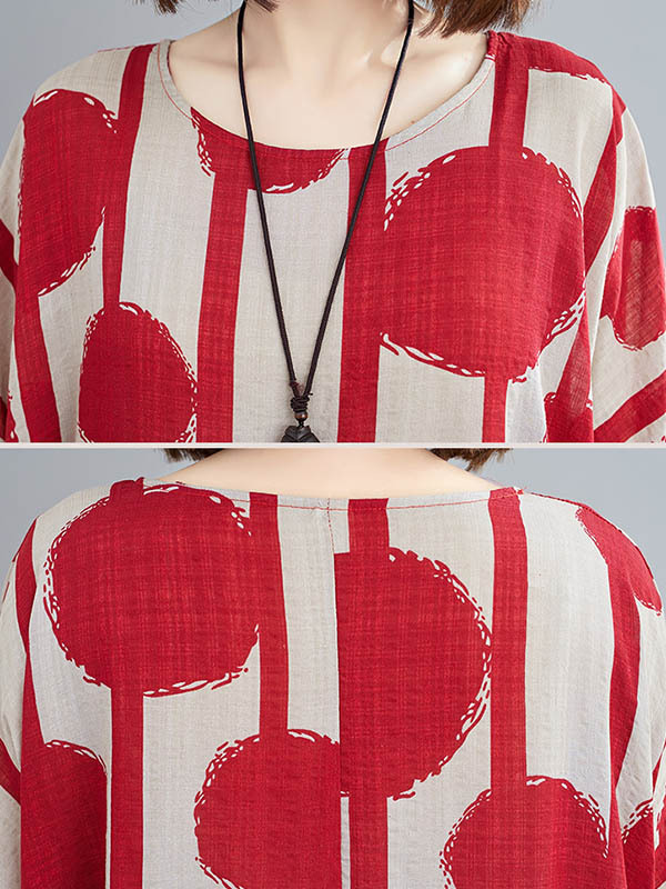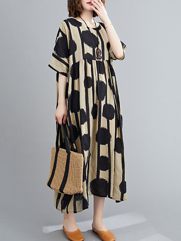 Original Polka-Dot Split-Joint Round-Neck Midi Dress