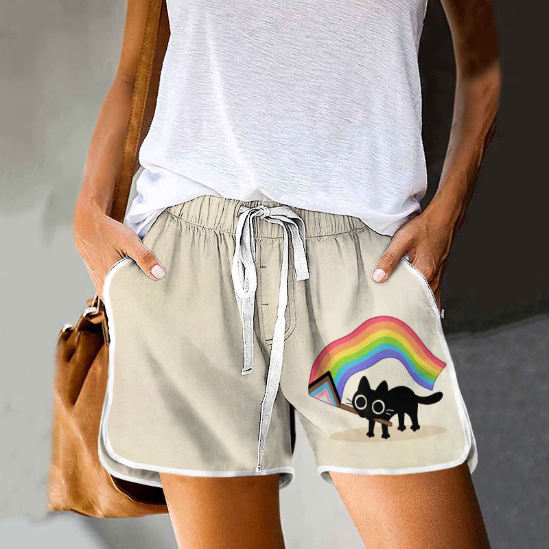 Rainbow Black Cat Flag Drawstring Pocket Shorts