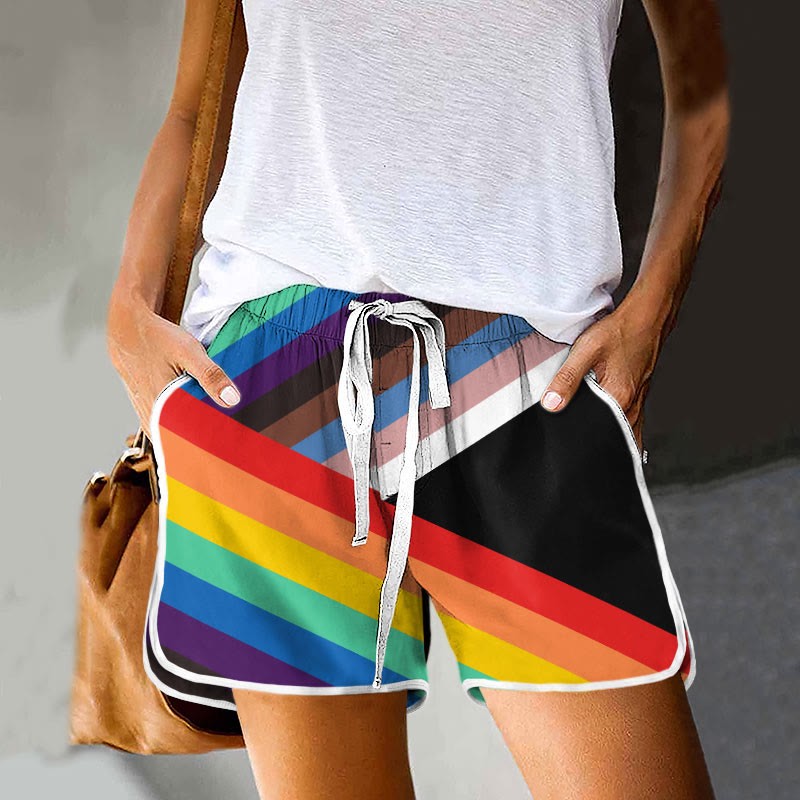 Rainbow Stripes Lgbt Art Printed Drawstring Pocket Shorts