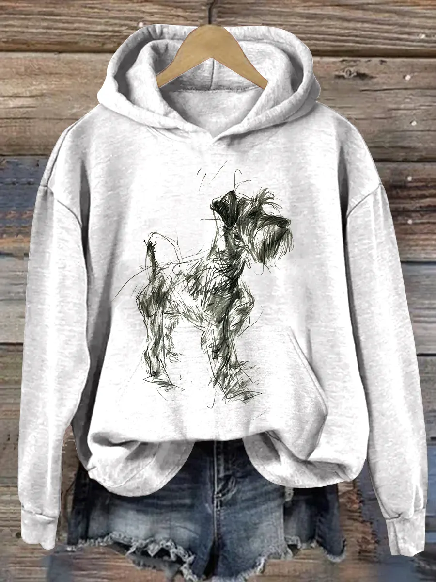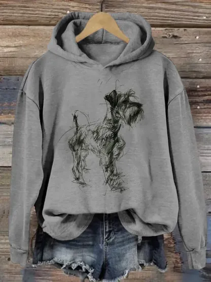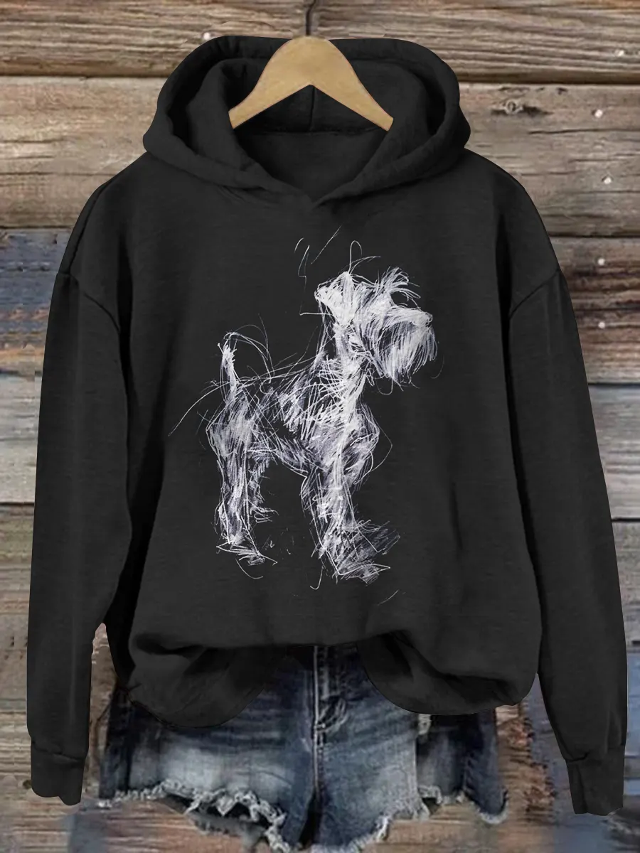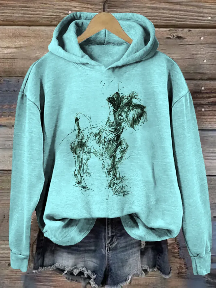 Retro Schnauzer Abstract Art Print Casual Hoodie Sweatshirt