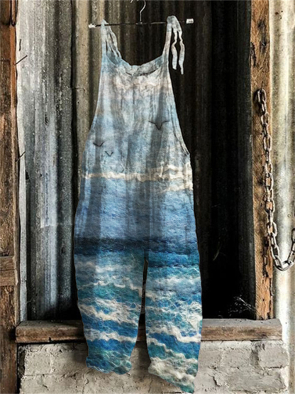 Seagulls Seascape Felt Art Casual Jumpsuit