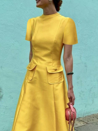 Short Sleeves Pockets Solid Color Split-Joint Round-Neck Maxi Dresses