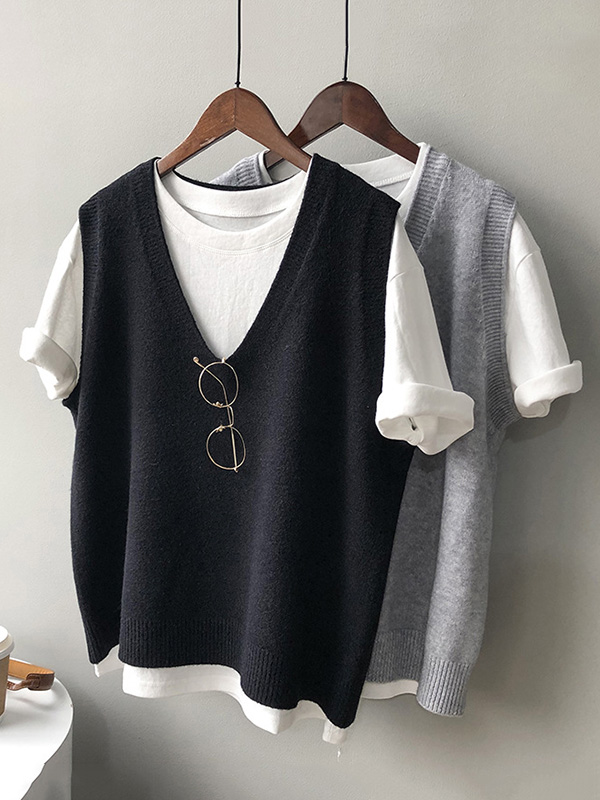 Simple 9 Colors V-Neck Loose Sleeveless Vest