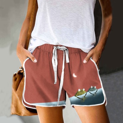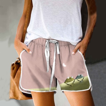 Simple Frog Color Block Print Drawstring Pocket Shorts