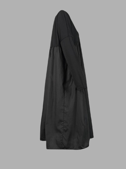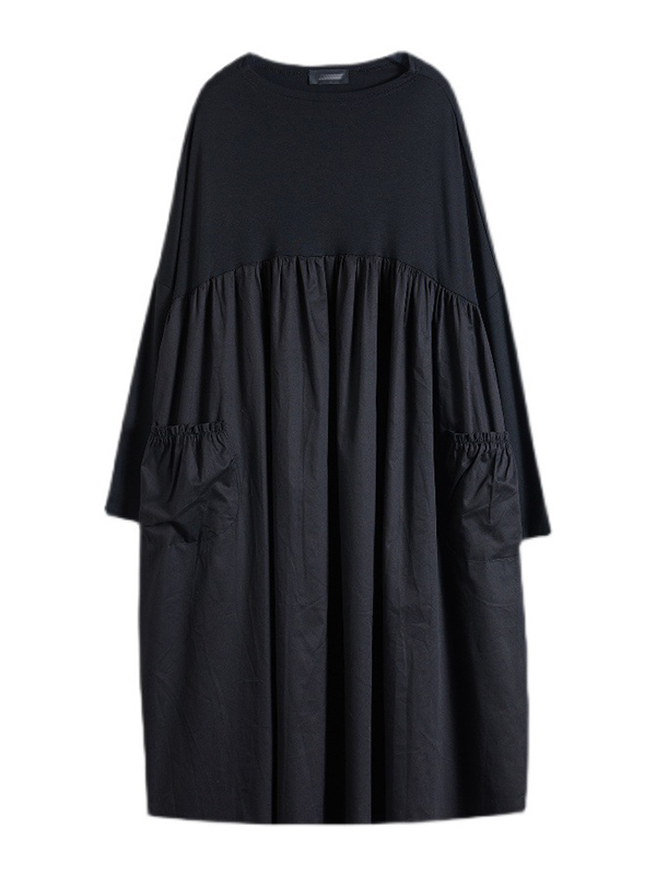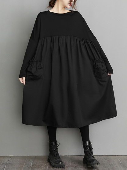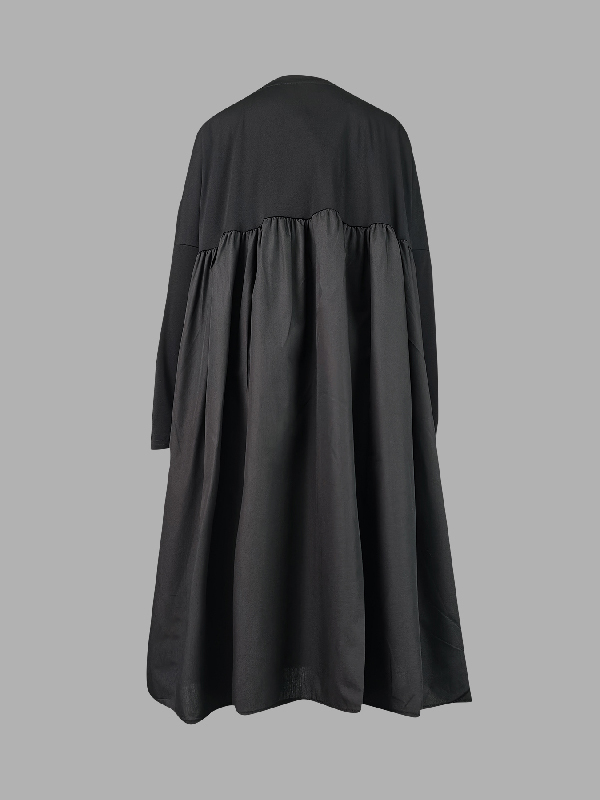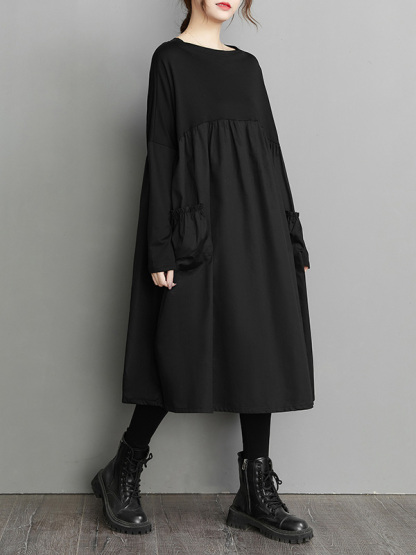 Simple Loose Black Split-Joint Long Sleeves Midi Dress