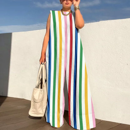 Sleeveless Wide Leg Shoulder Pad Printed Jumpsuits
