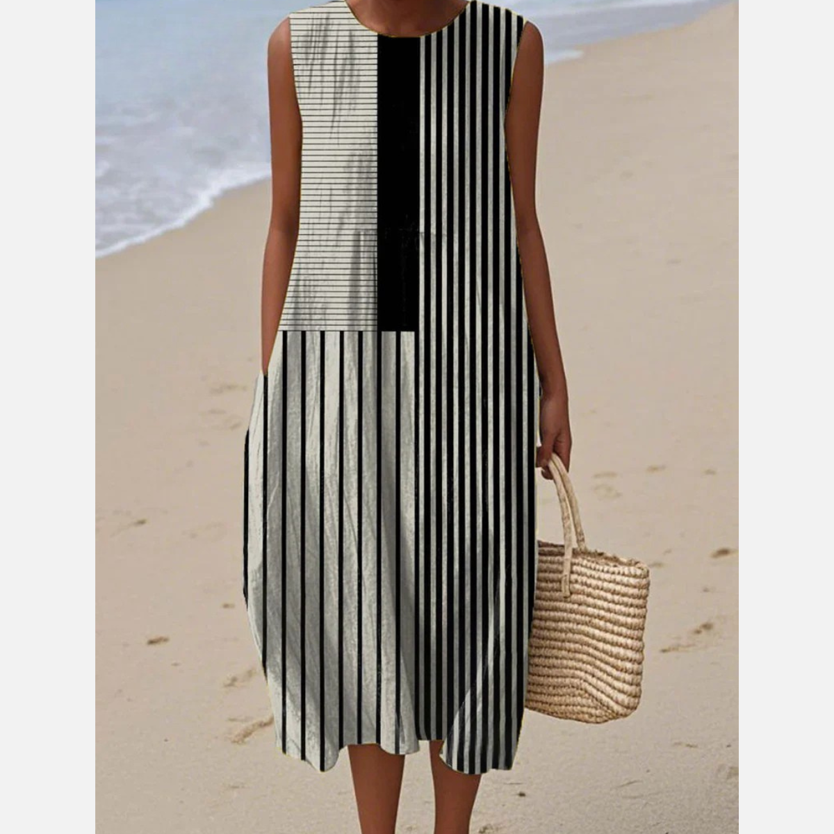 SORELLE – MONOCHROME STRIPED Maxi Dress