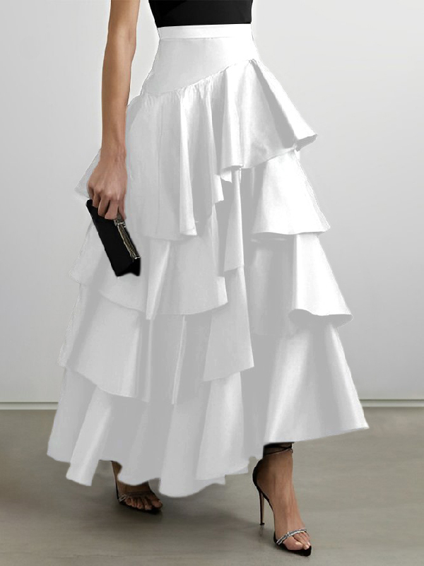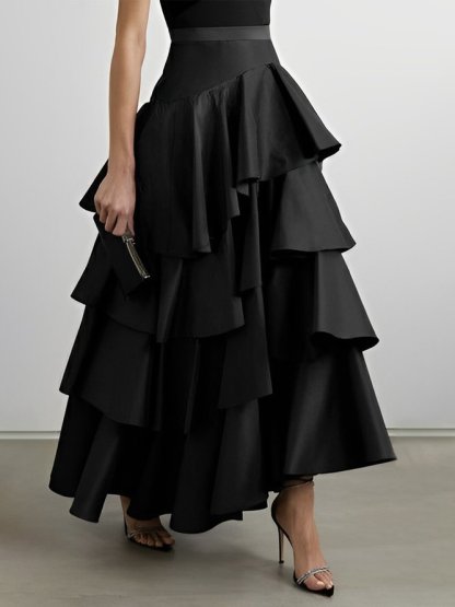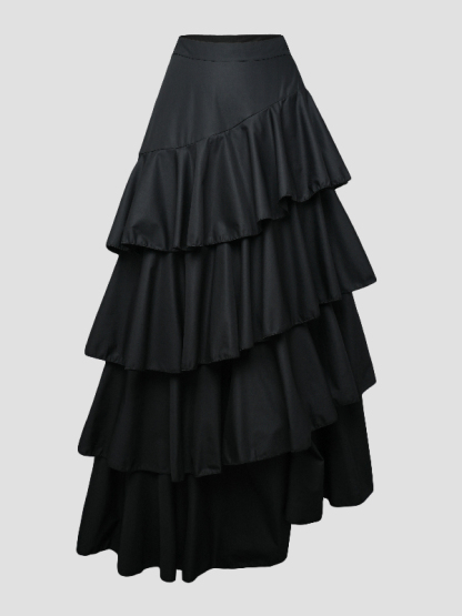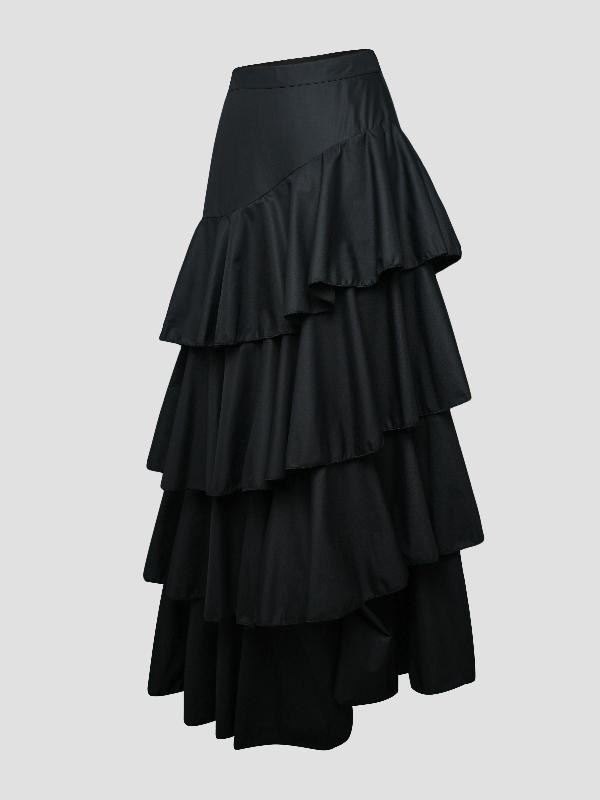 A-Line High Waisted Falbala Solid Color Long Skirts Skirts Bottoms
