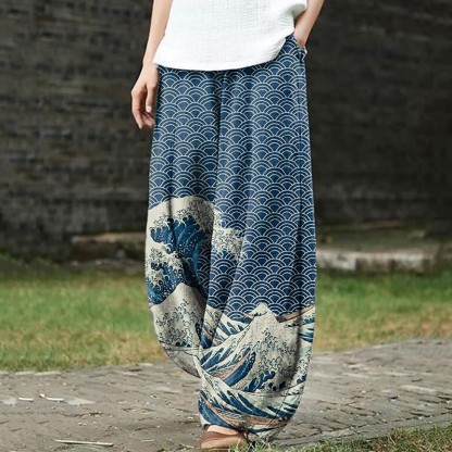 Dashingsoul The Great Wave Off Kanagawa Inspired Japanese Art Print Casual Pants