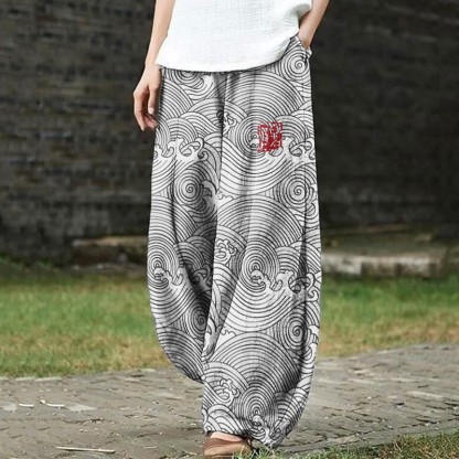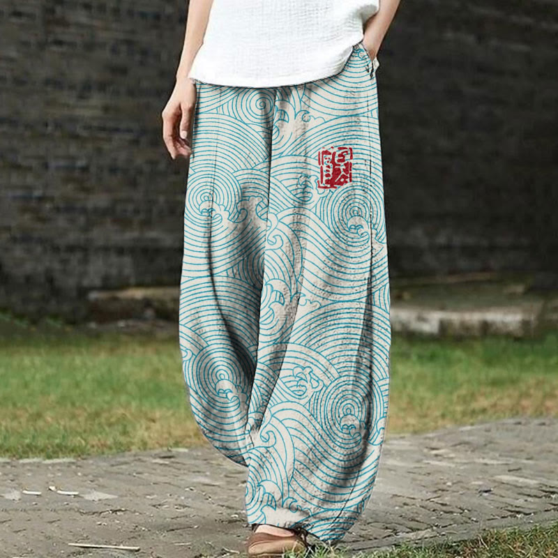 The Silent Dance Of Waves Japanese Art Print Casual Pants