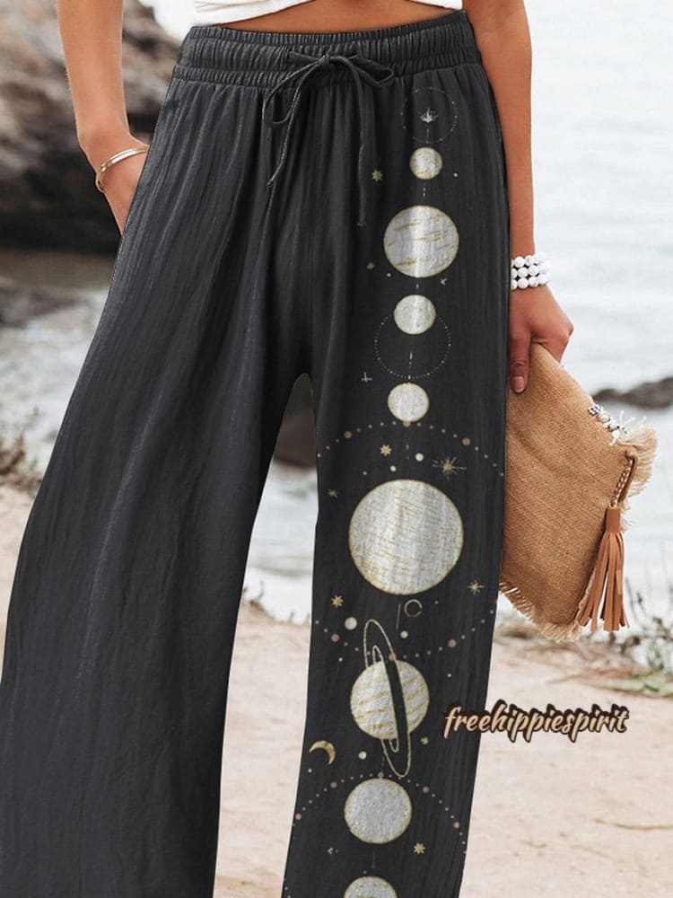 Track Of The Moon Graphic Printed Women's Cotton And Linen Casual Pants
