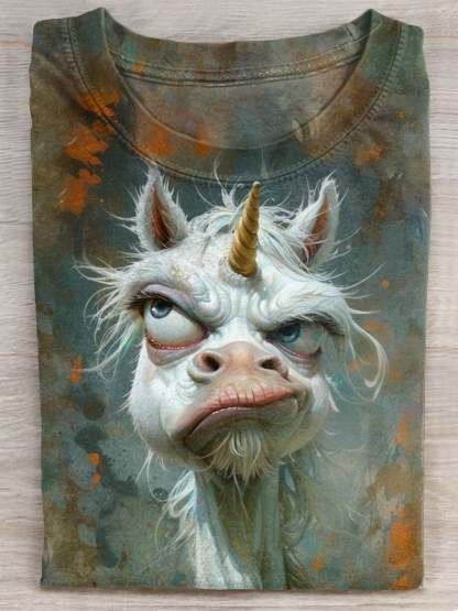 Unicorn Attitude Funny Art Print Casual Short Sleeve T-shirt