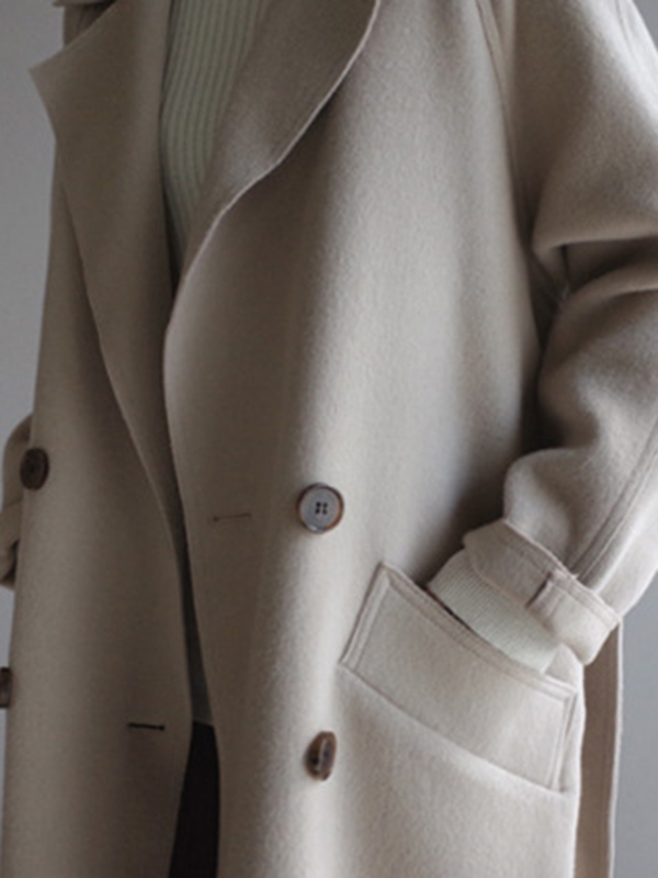 Urban Loose Solid Color Belted Woolen Coat