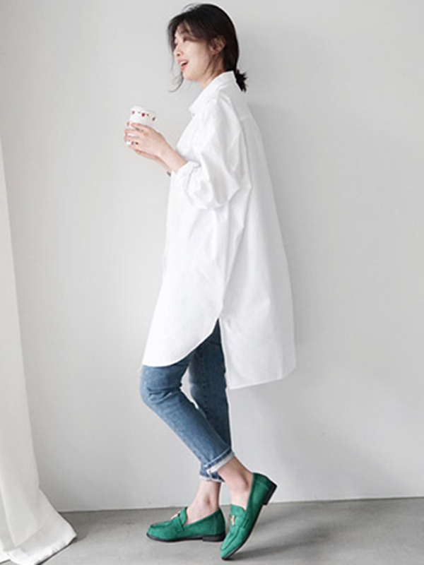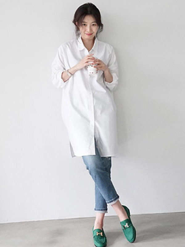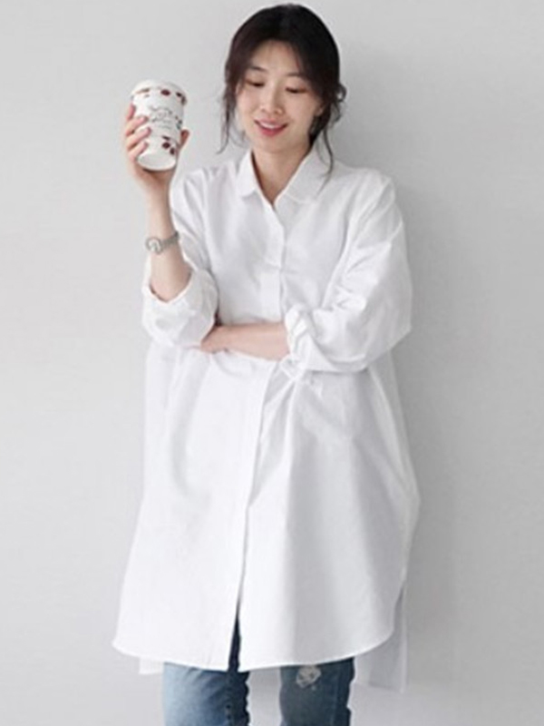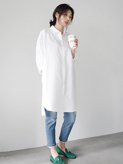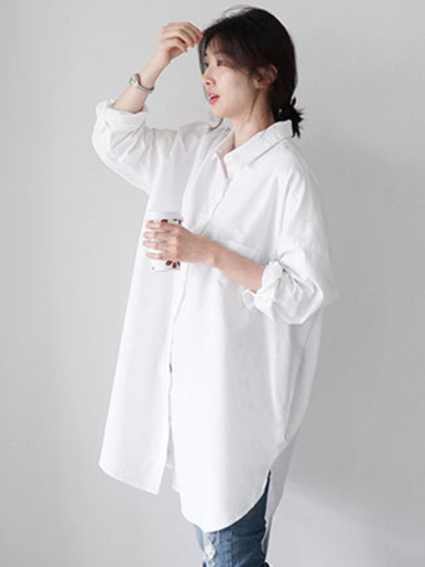 Urban Loose Solid Color Striped Lapel Blouse Top