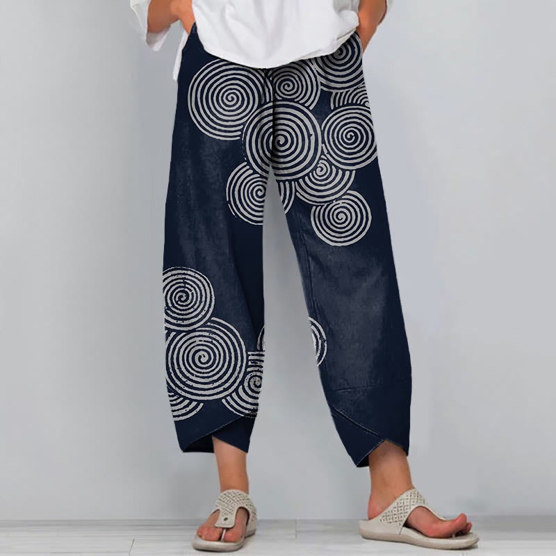 Dashingsoul Vintage Fingerprint Shape Art Print Drawstring Pocket Women's Pants