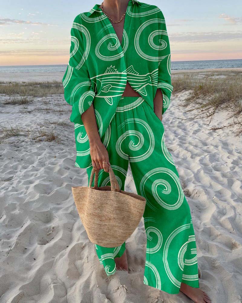 Weird Striped Fish Print Two-Piece Set