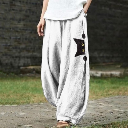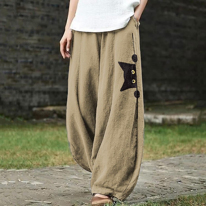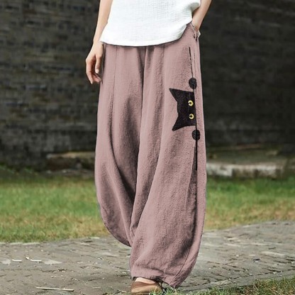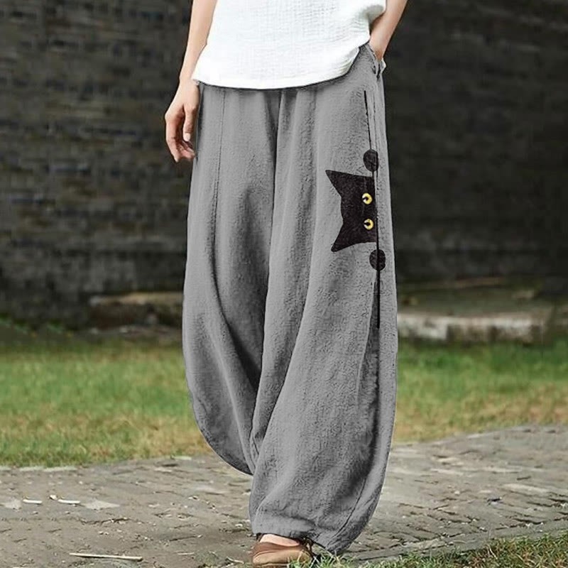 Dashingsoul Women's Casual Black Cat Print Pants