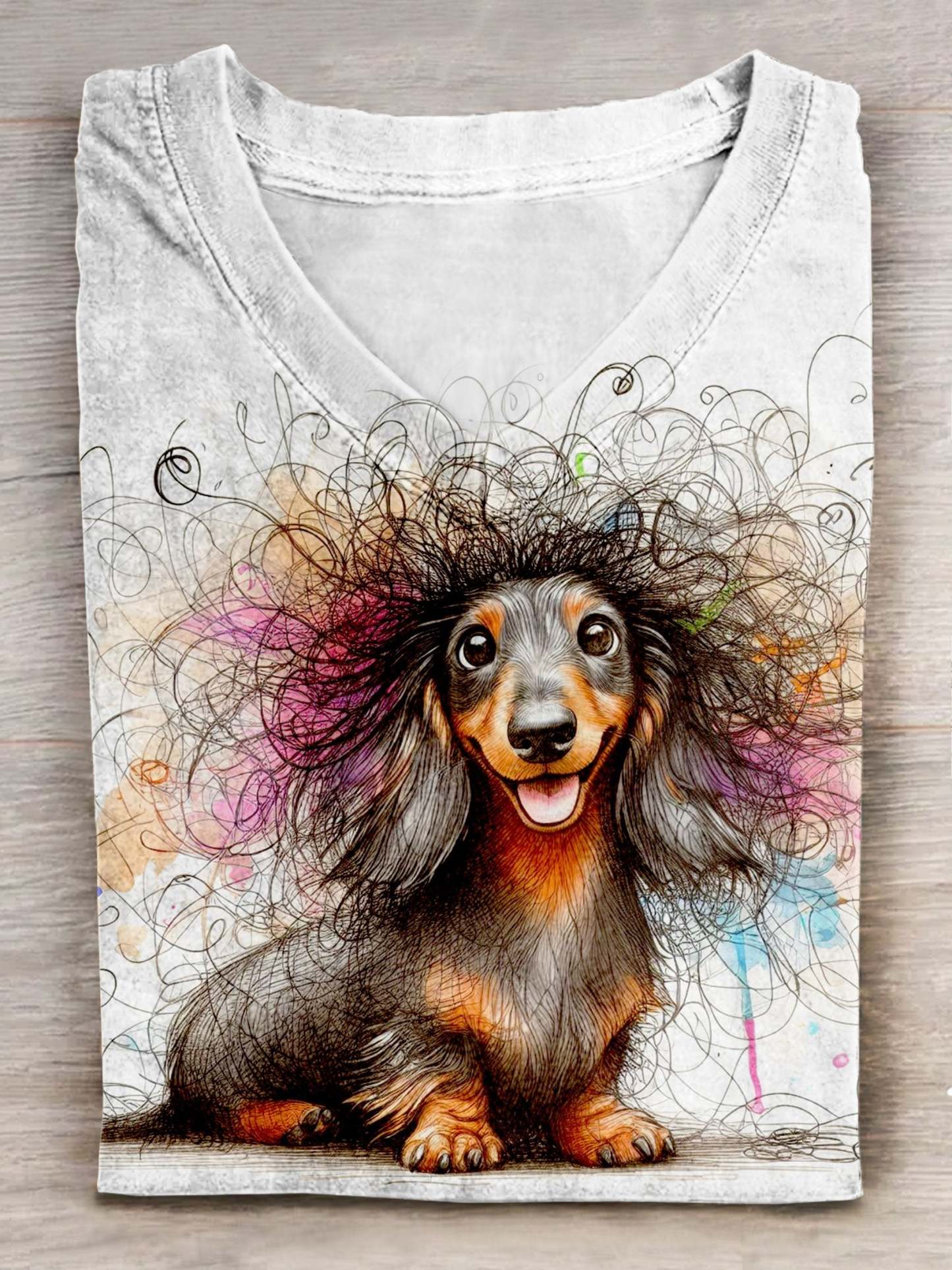 Women's Dachshund Art Print V-neck Casual T-Shirt