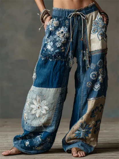Women's Retro Floral Art Print Casual Pants