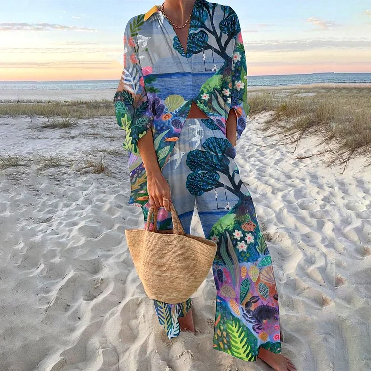 Women's Underwater World Printed Shirt & Pants Two-piece Set