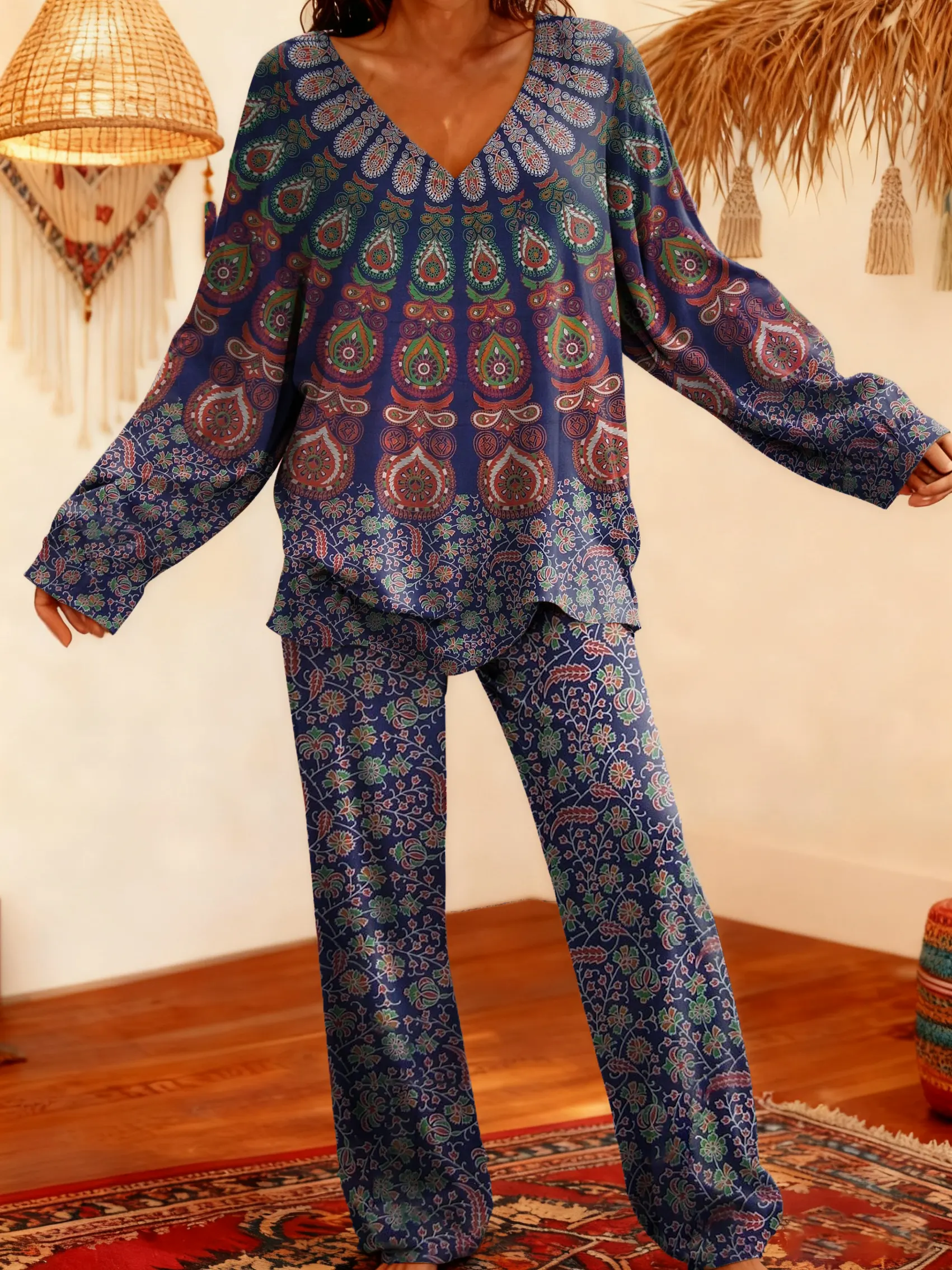 | L | 16 | 12 | Product Details: Product ID:SU0056I9OK Style: Casual Fit Type:Fit Shirt Length: Over Hip Sleeves Length: Long Sleeve Collar:V Collar Material:Velvet Material Stretch: No Stretch Pants Detail : Elastic waistband,two Side Pockets Weight: 0.5kg Package: 1 x Top ,1X Pants Size Guide For Women| Size | UK | US | EUR | Top Length | Top Chest | Top Hip |