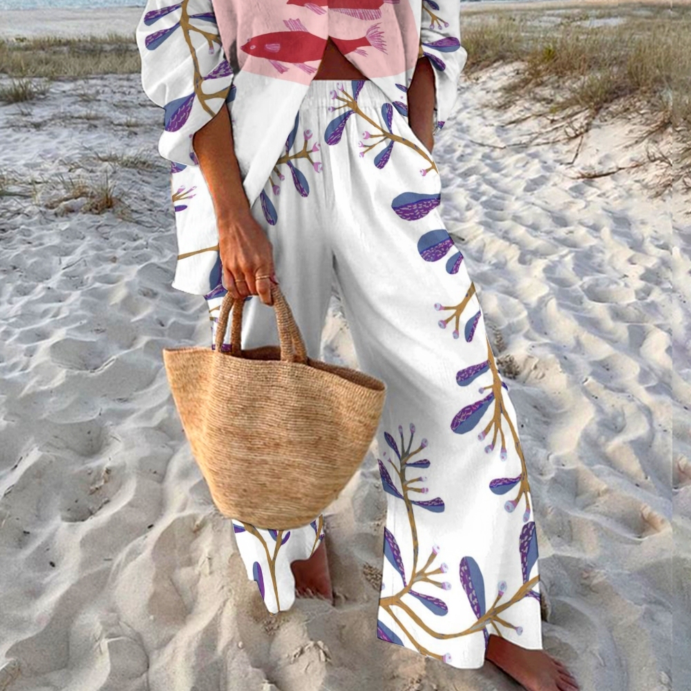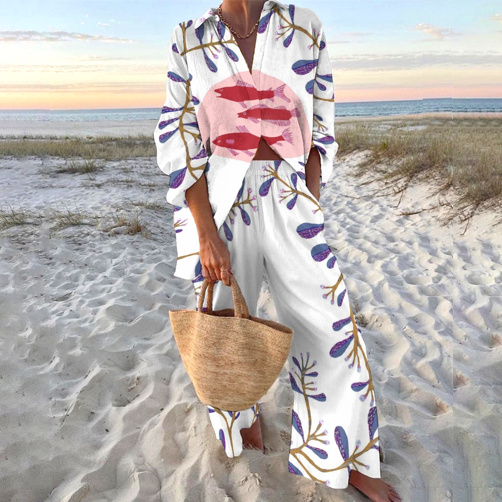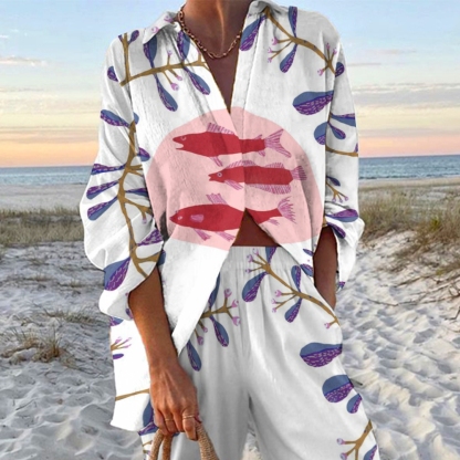 Women's Vintage Fish Printed Shirt & Pants Two-piece Set