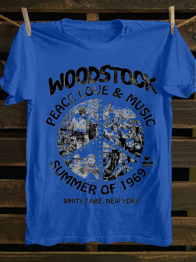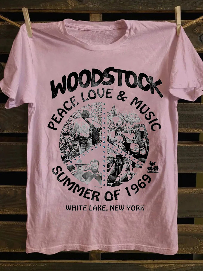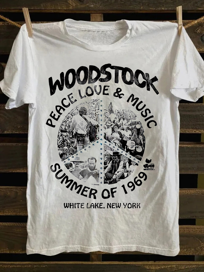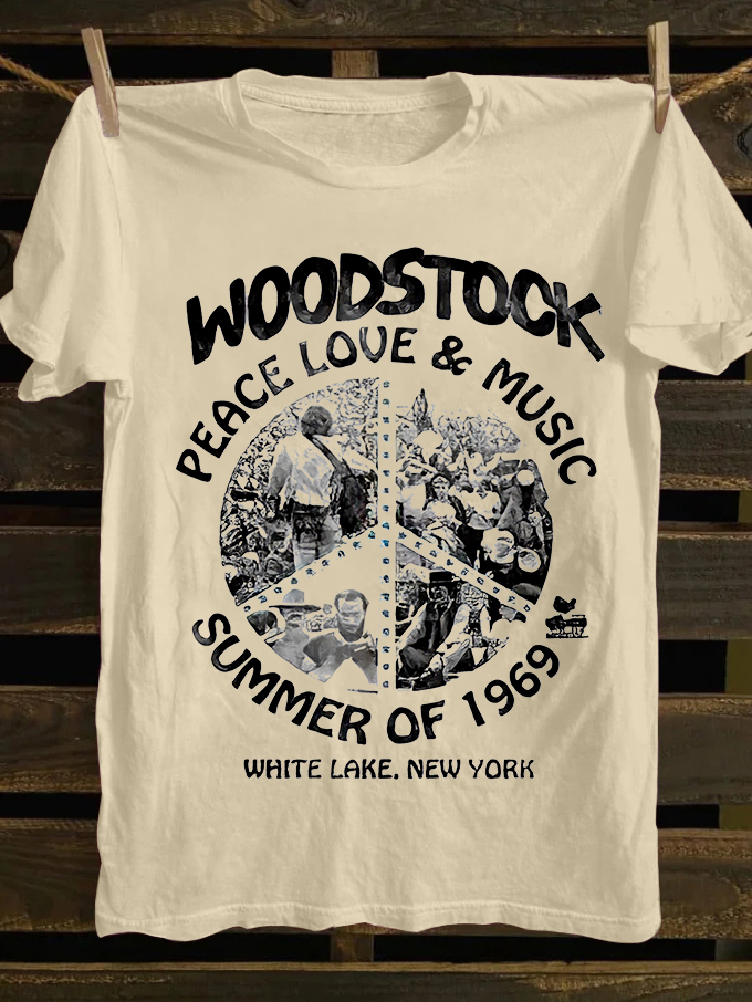 Woodstock Peace Love & Music Printed Unisex Oversized T-shirts
