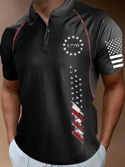 Men's 1776 Flag Print Polo Shirt – lolonb