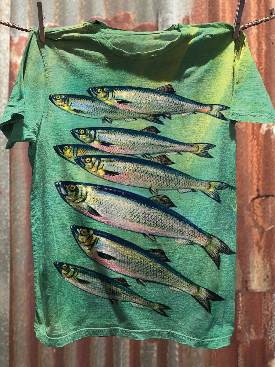 Vintage Fish Art Print Casual Short Sleeve T-shirt