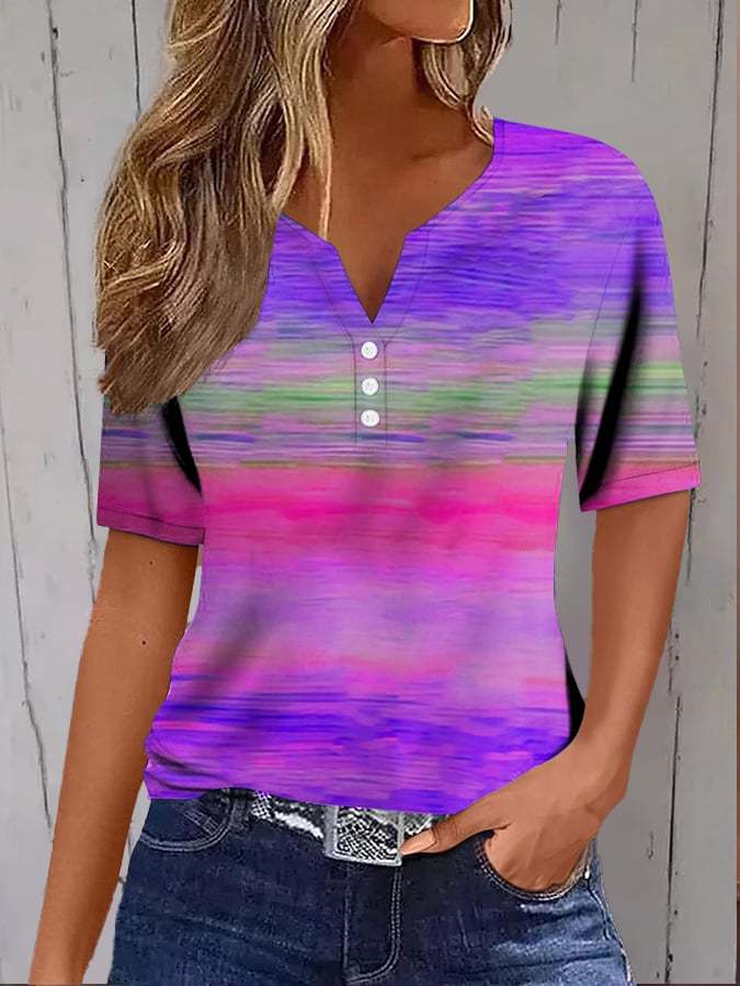 Women's Casual Purple Gradient Art Button T-shirt