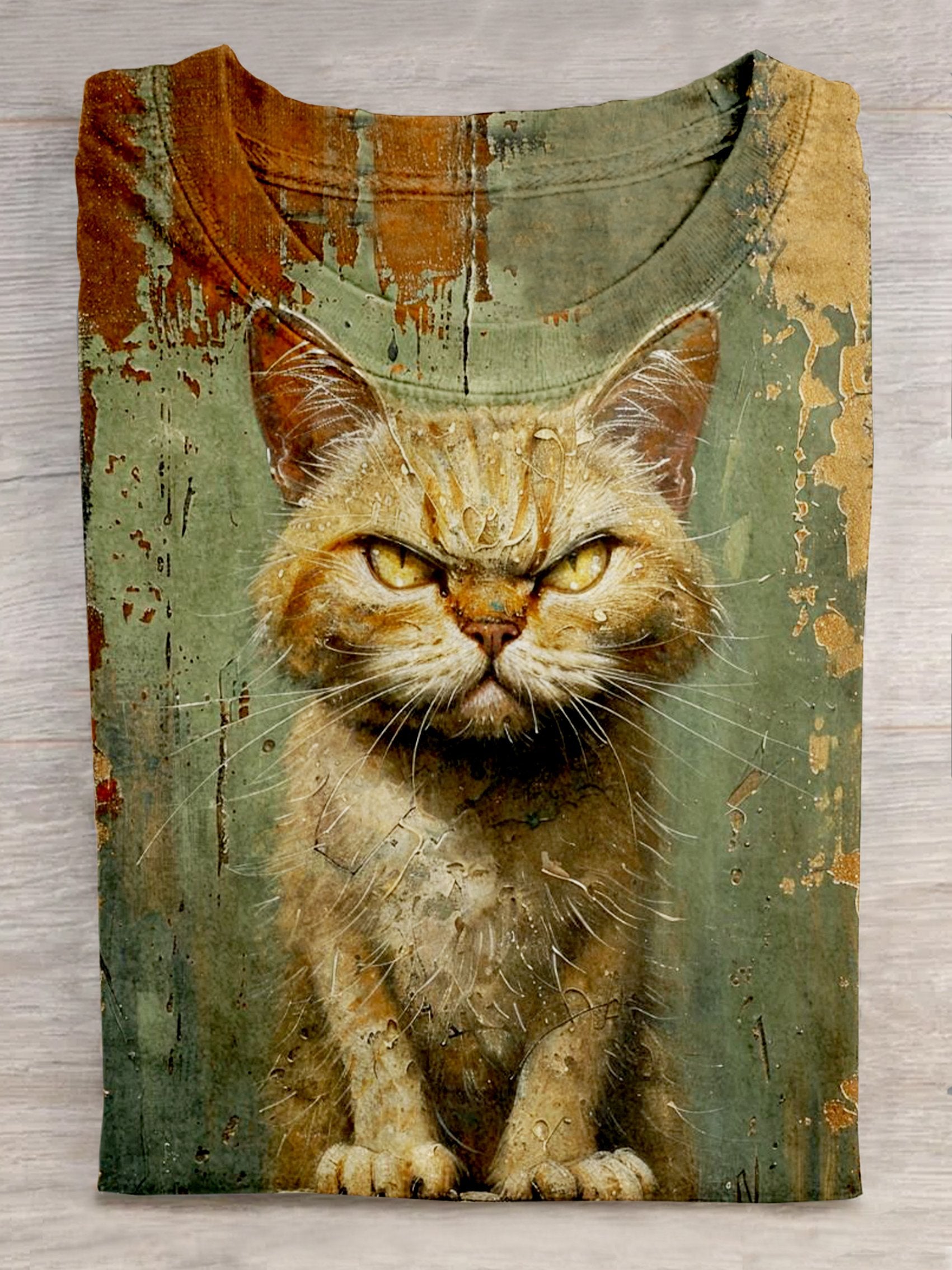 Anger Cat Art Print Casual Short Sleeve T-shirt