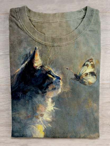 Funny Cat Art Print Casual Short Sleeve T-shirt
