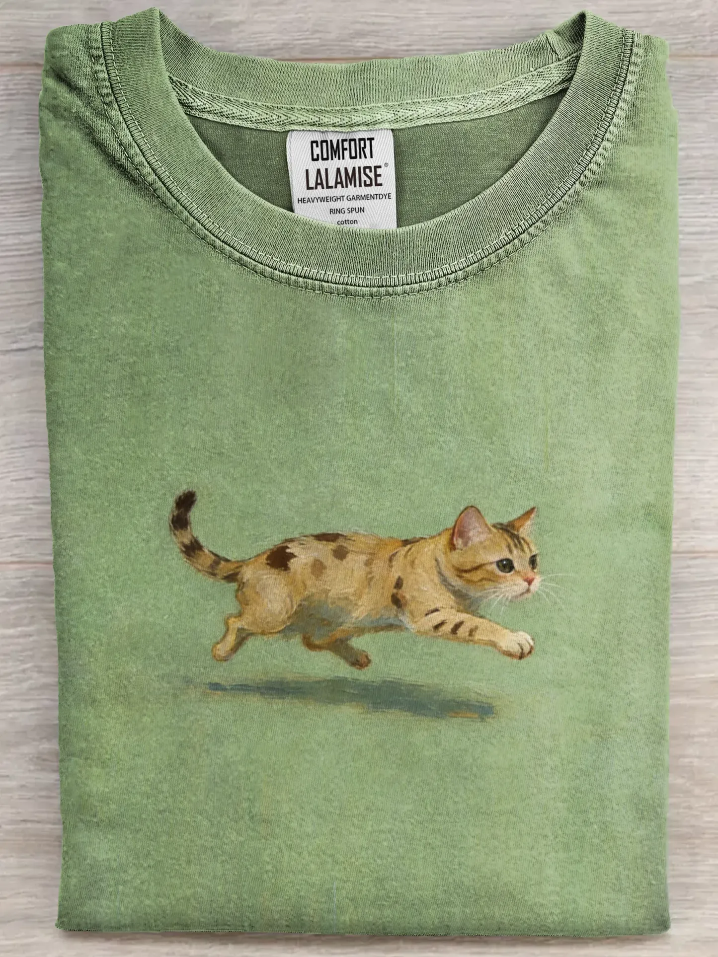 Funny Retro Cute Running Cat Art Print Casual Cotton Short Sleeve T-shirt