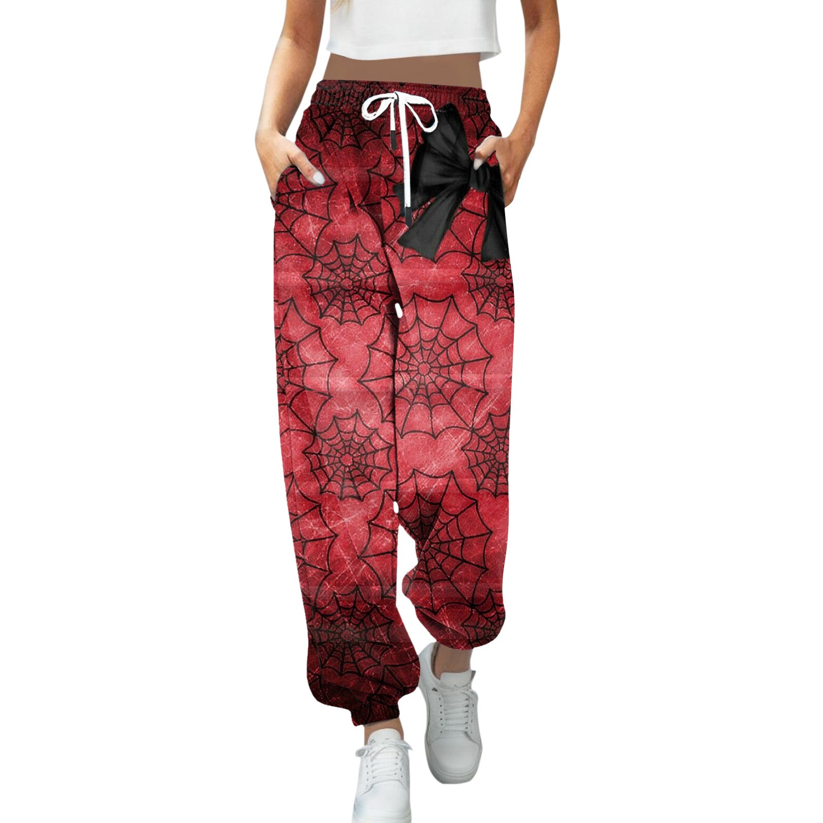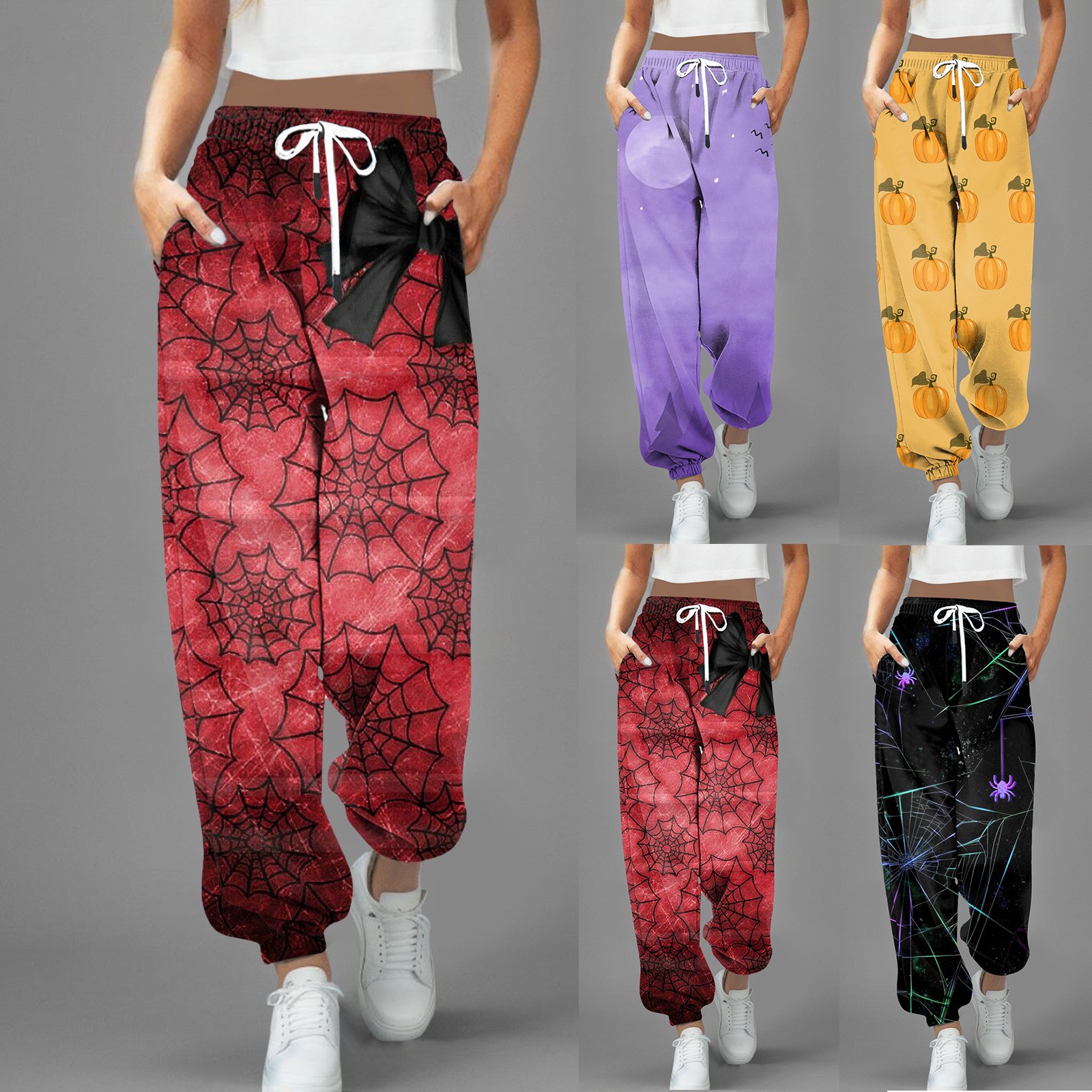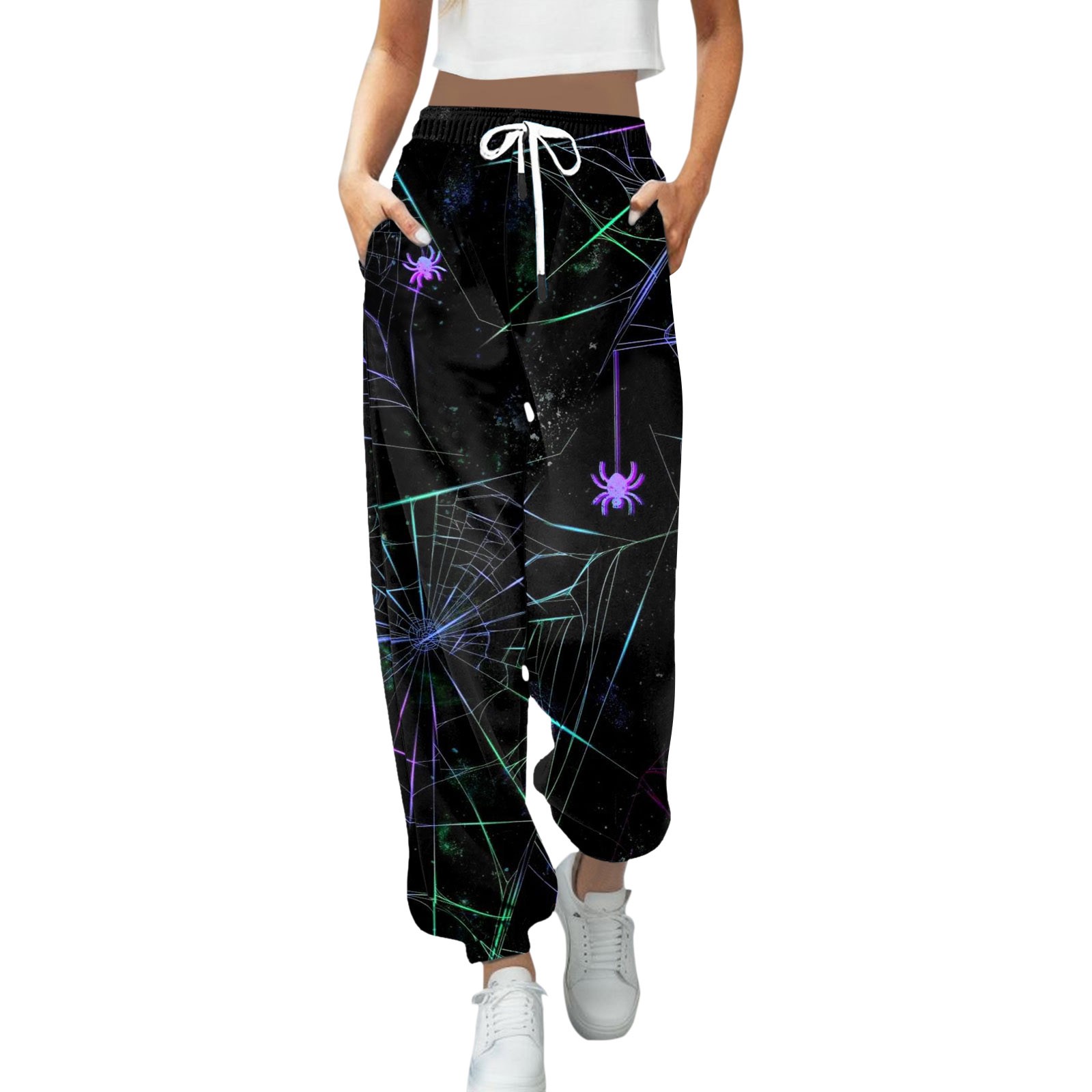 Halloween European And American New Casual Fashion 3D Printing Women's Leg Pants Drawstring High Waist Casual Pants halloween
