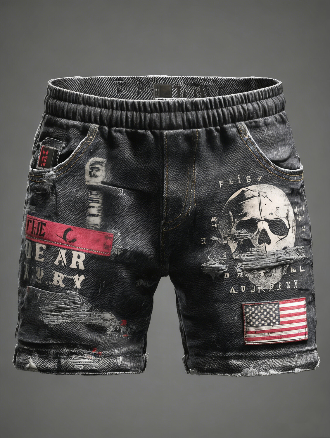 Men's Dark Art Skull American Flag Print Casual Shorts