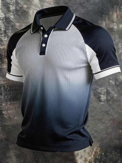 Men's Ombre Pinstripe Printed Short Sleeve Polo Shirt