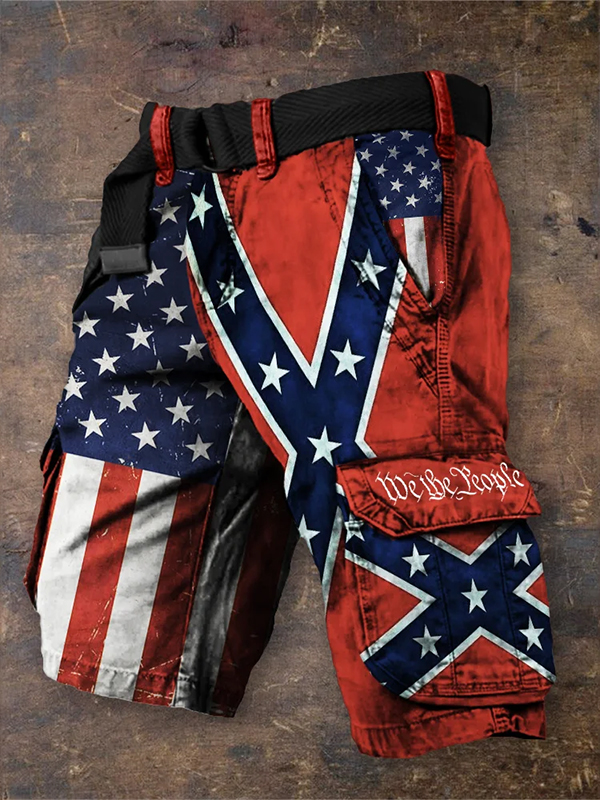 Men's We The People Retro American Flag Art Print Denim-Like Casual Shorts