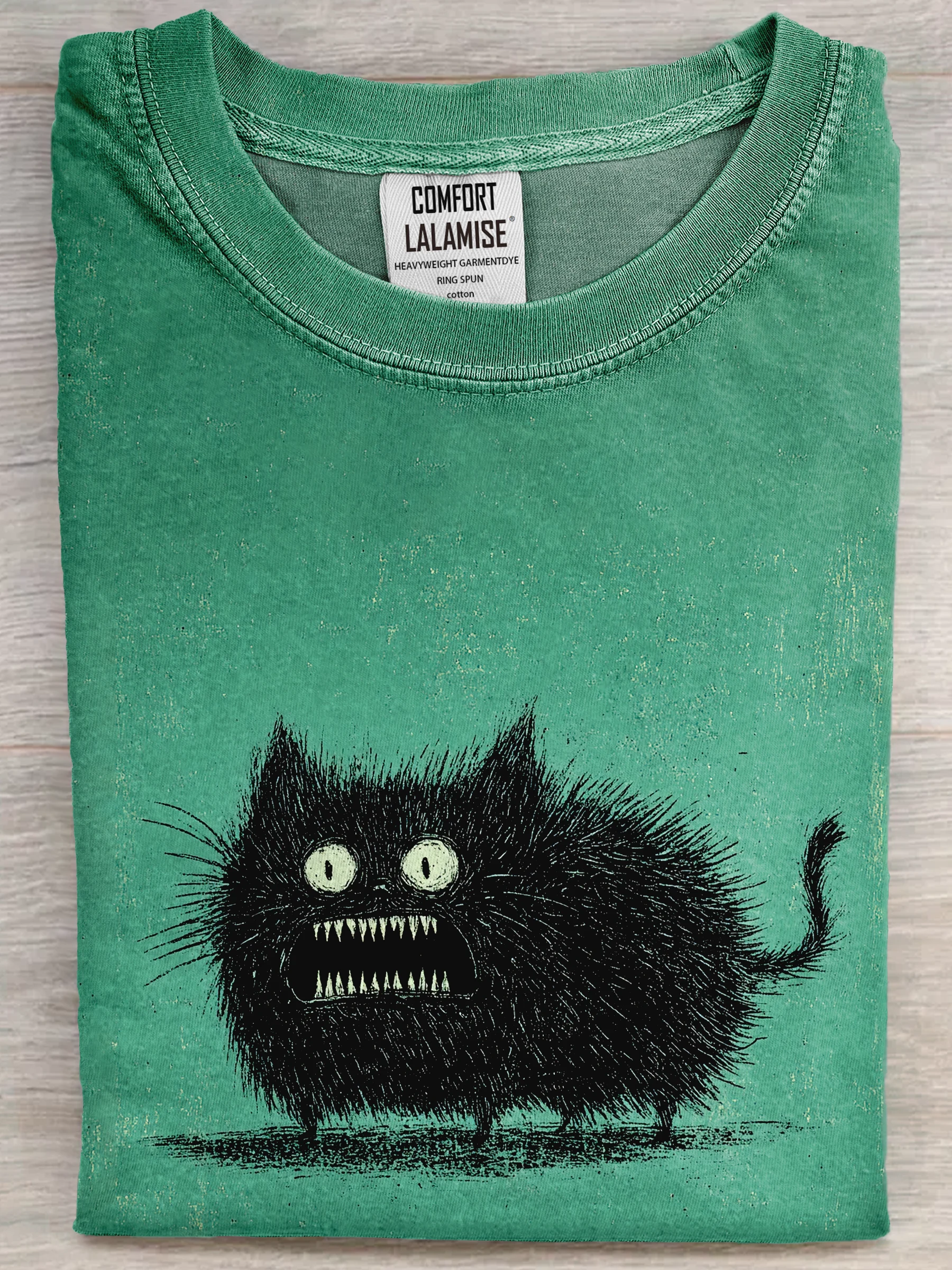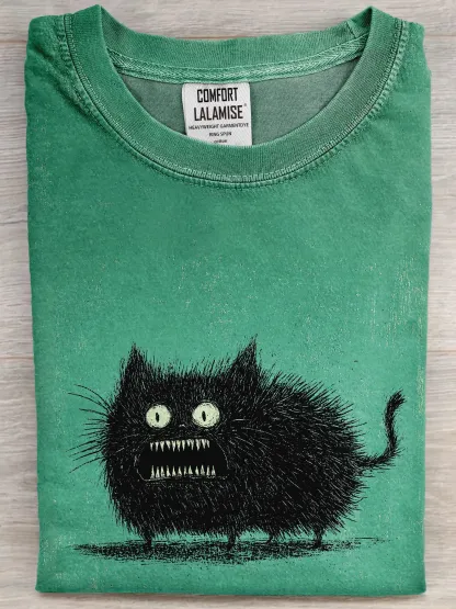 Playful Spiky-haired Black Cat Art Print Casual Crew Neck Short Sleeve T-shirt