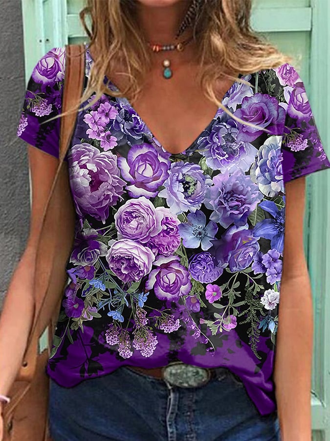 Women's Alzheimer'S Disease Awareness Flower Print T-shirt