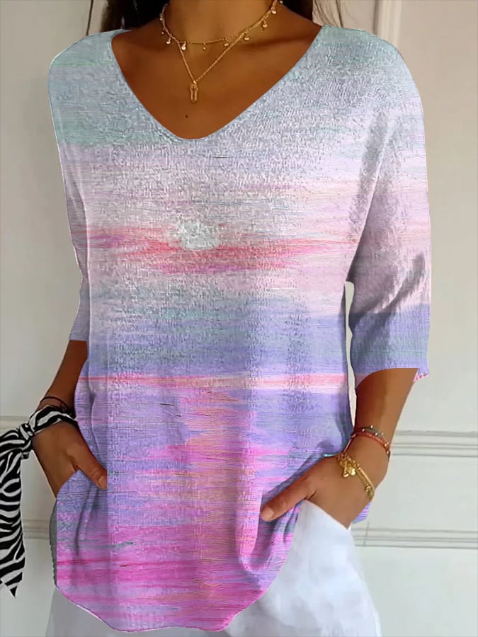 Women's Casual Retro Purple Art Striped T-Shirt