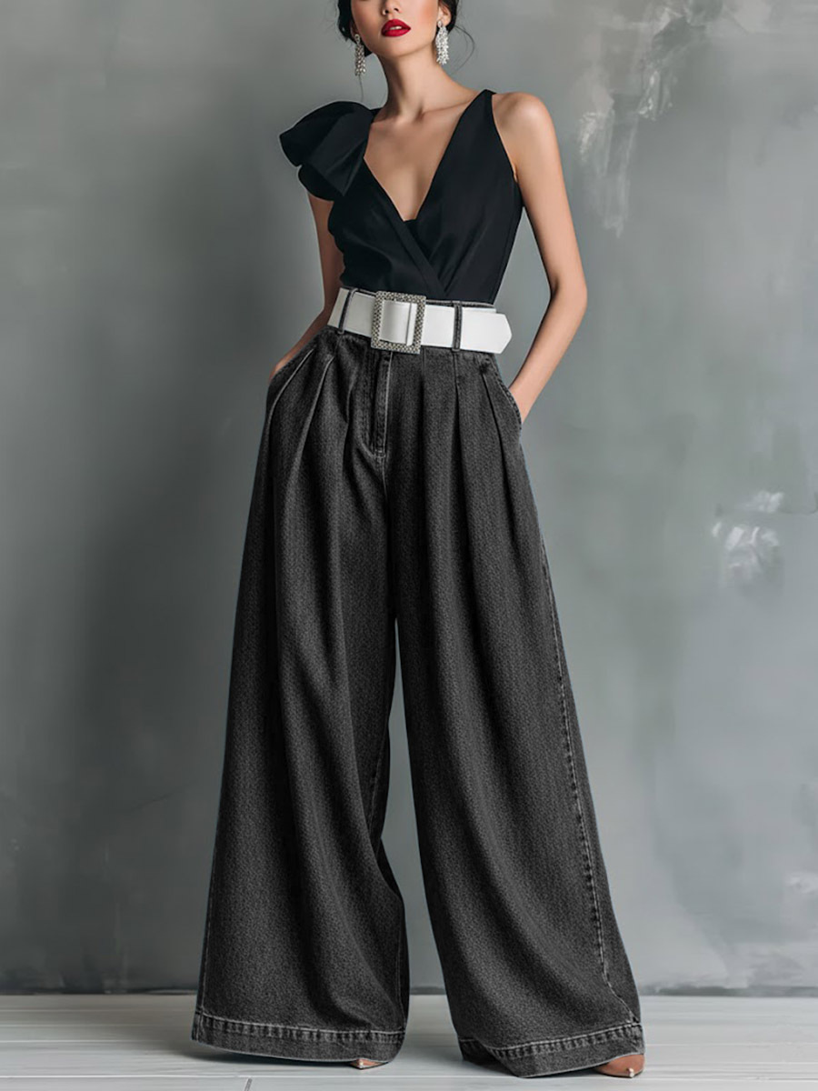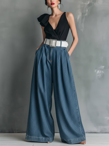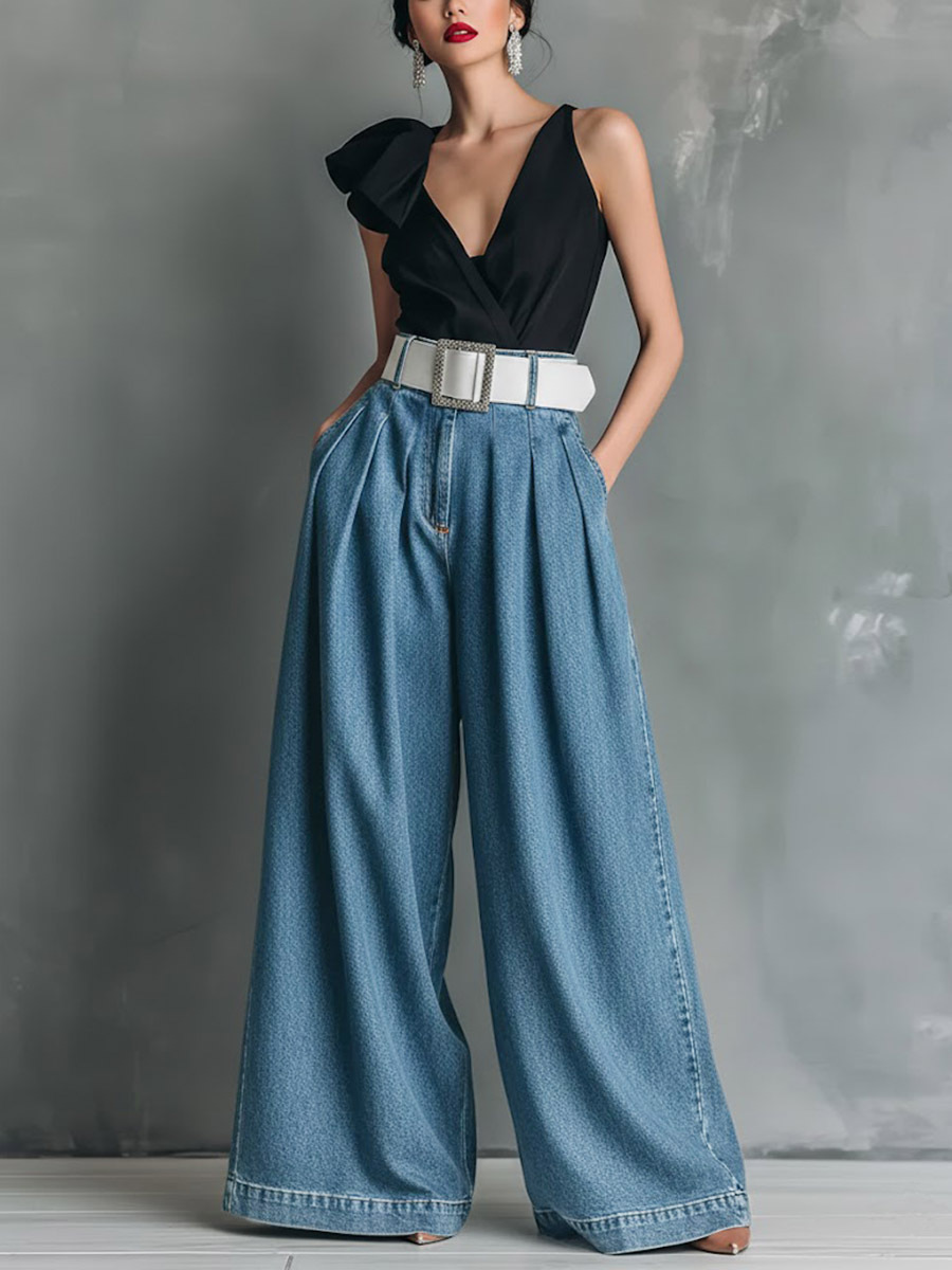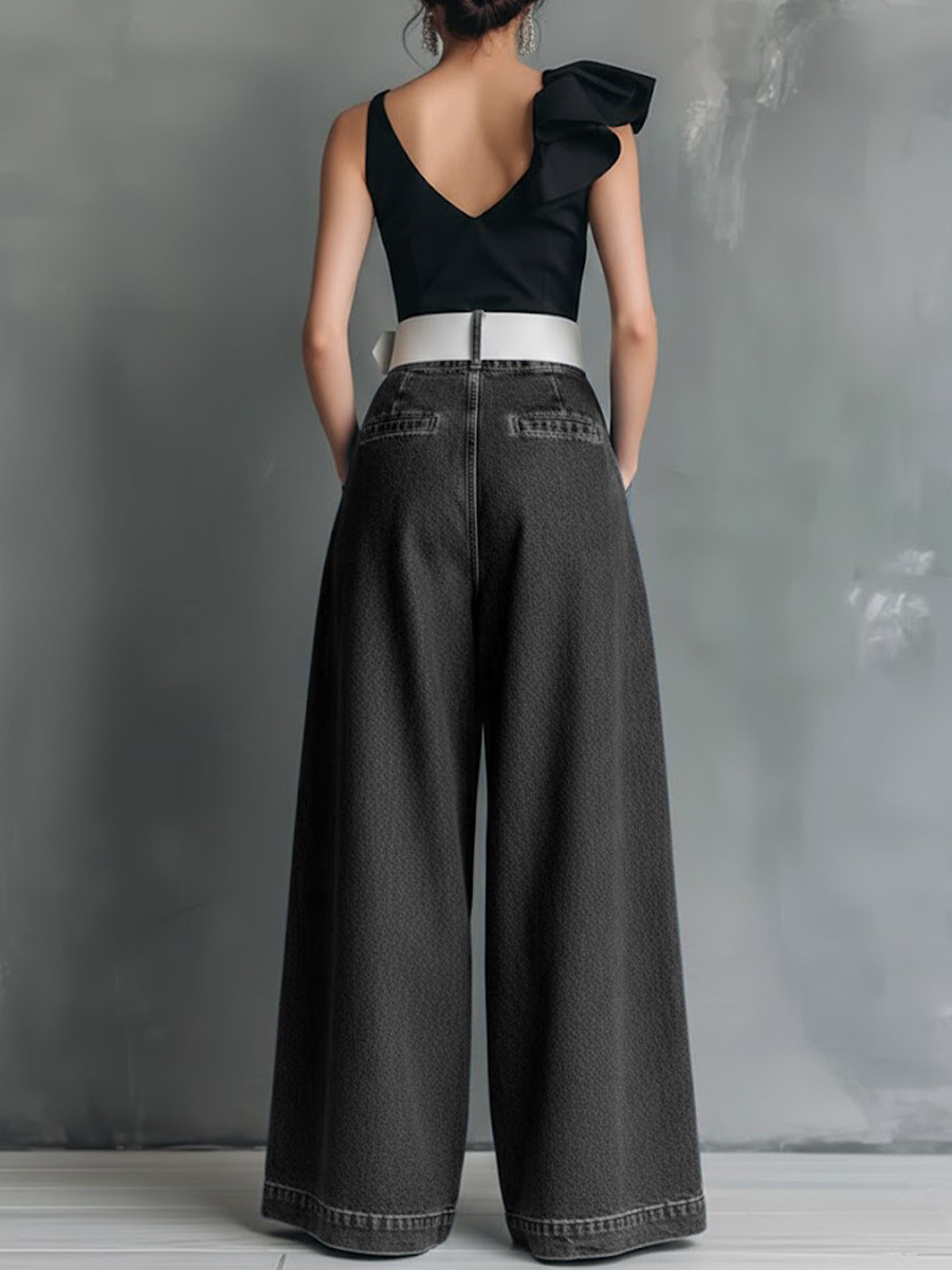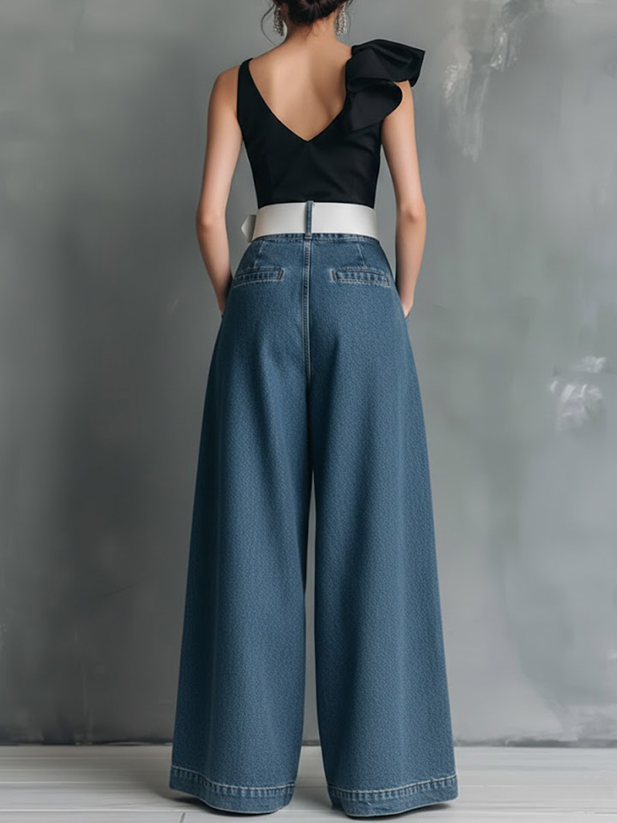 Women's High-waisted Casual Loose-fitting Wide-leg Jeans
