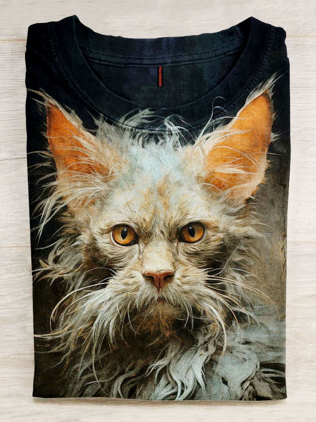 Funny Cat Art Print Casual Short Sleeve T-shirt