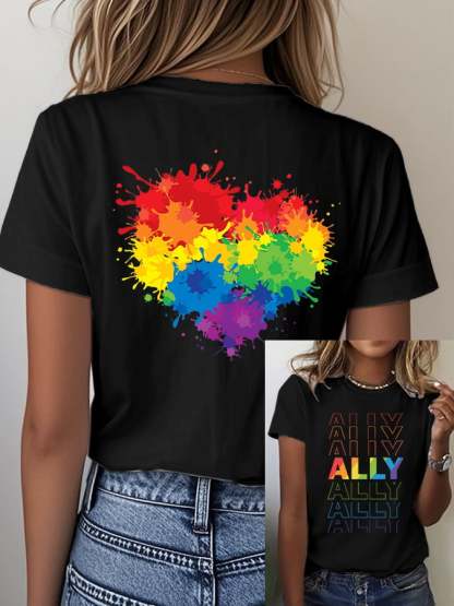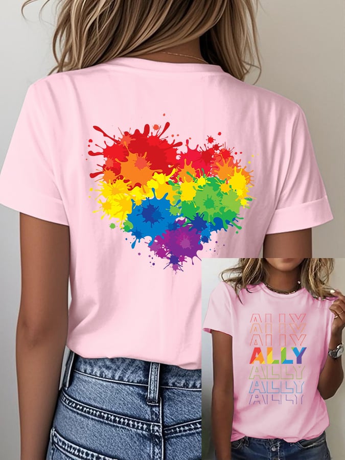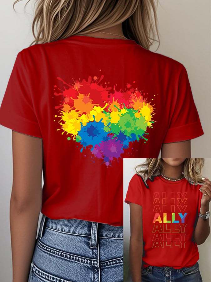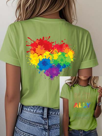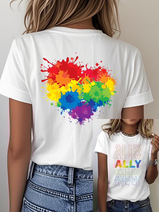 Women's Casual Fashion Rainbow Heart T-Shirt