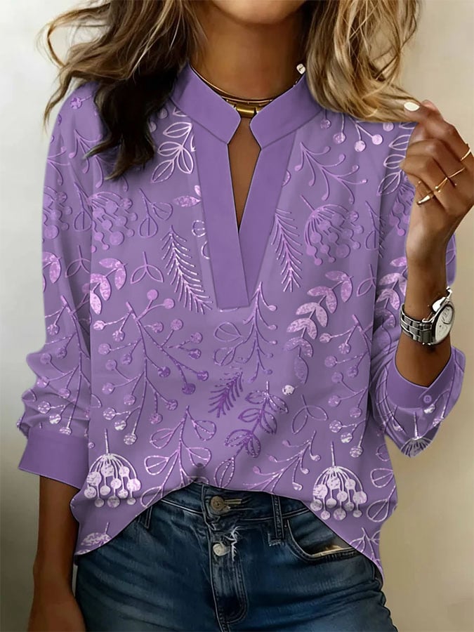 Women's Retro Purple Floral Print Elegant Shirt