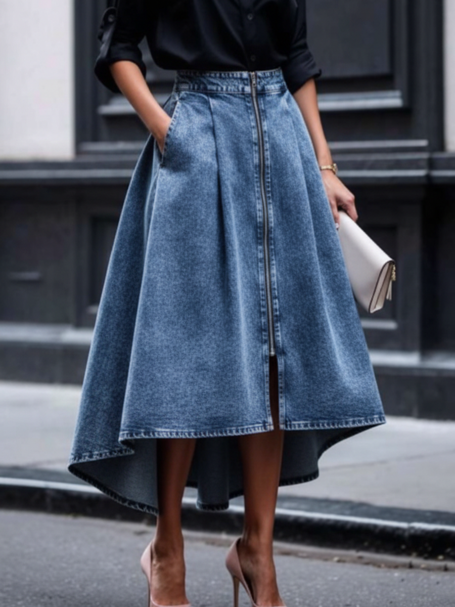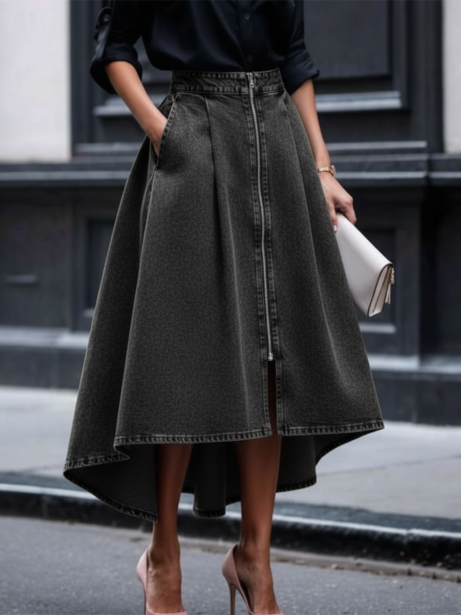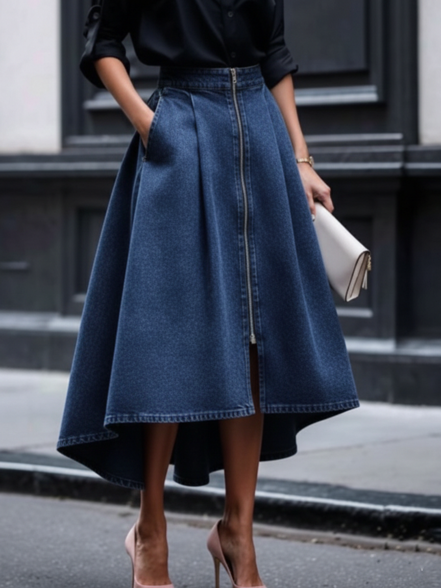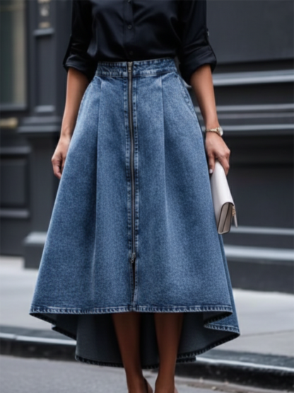 Elegant Zippered Irregular Hem Denim Skirt – lolonb