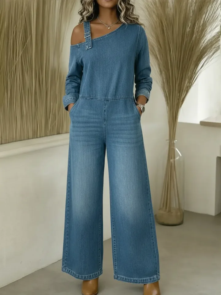 Women's Fashionable Off-the-shoulder Denim Jumpsuit – lolonb
