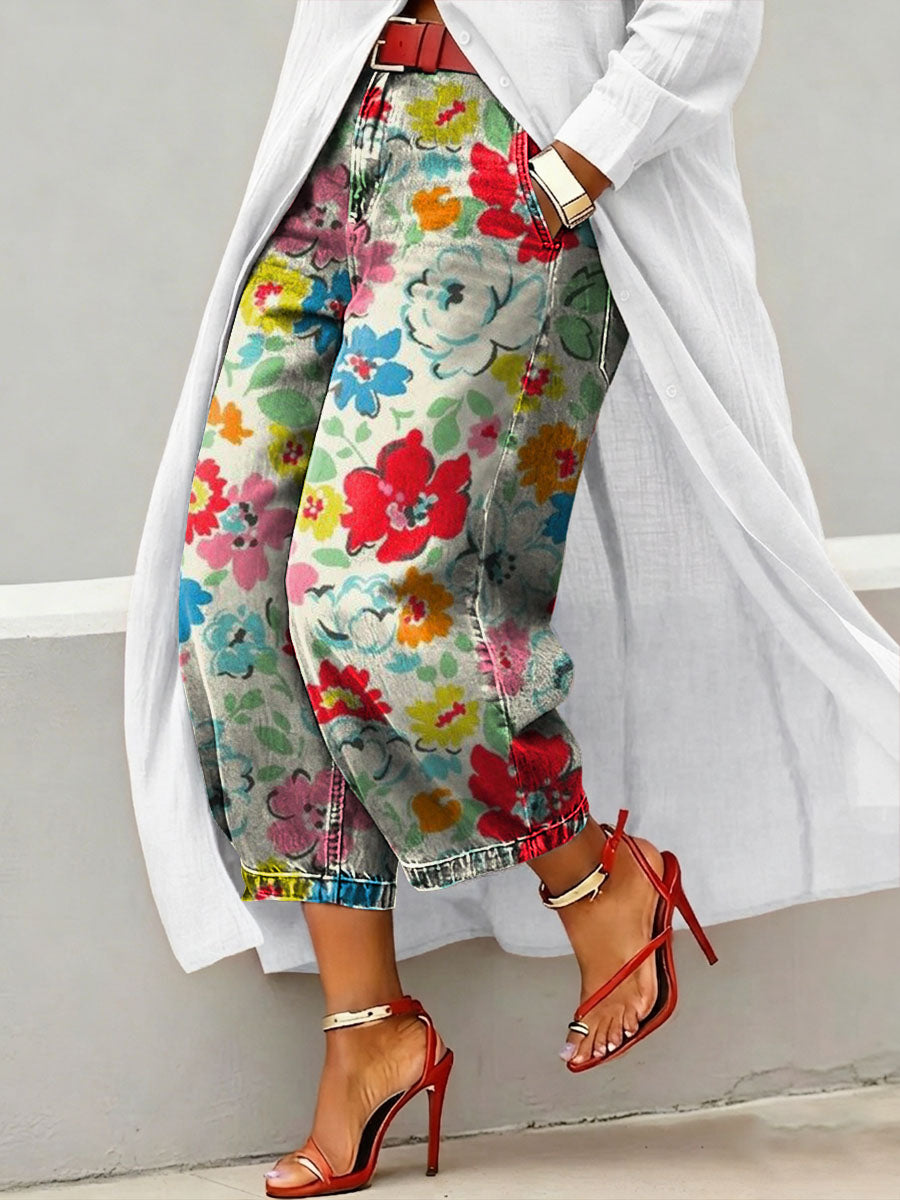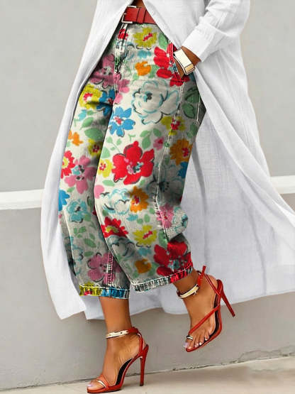 Women's Vintage Floral Print Casual Jeans – lolonb