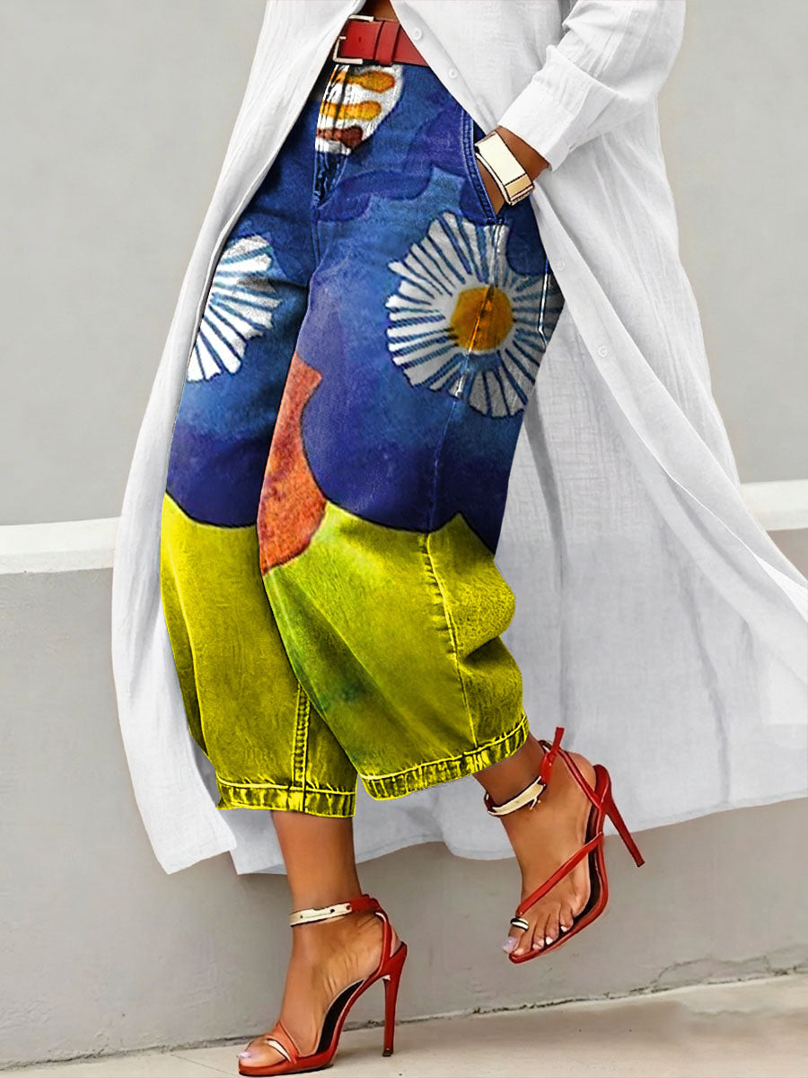 Women's Vintage Floral Print Casual Jeans – lolonb