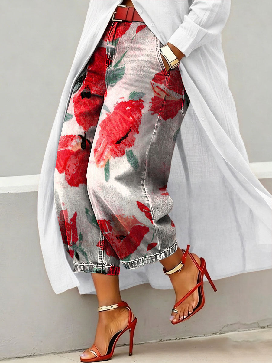 Women's Vintage Poppy Print Casual Jeans – lolonb