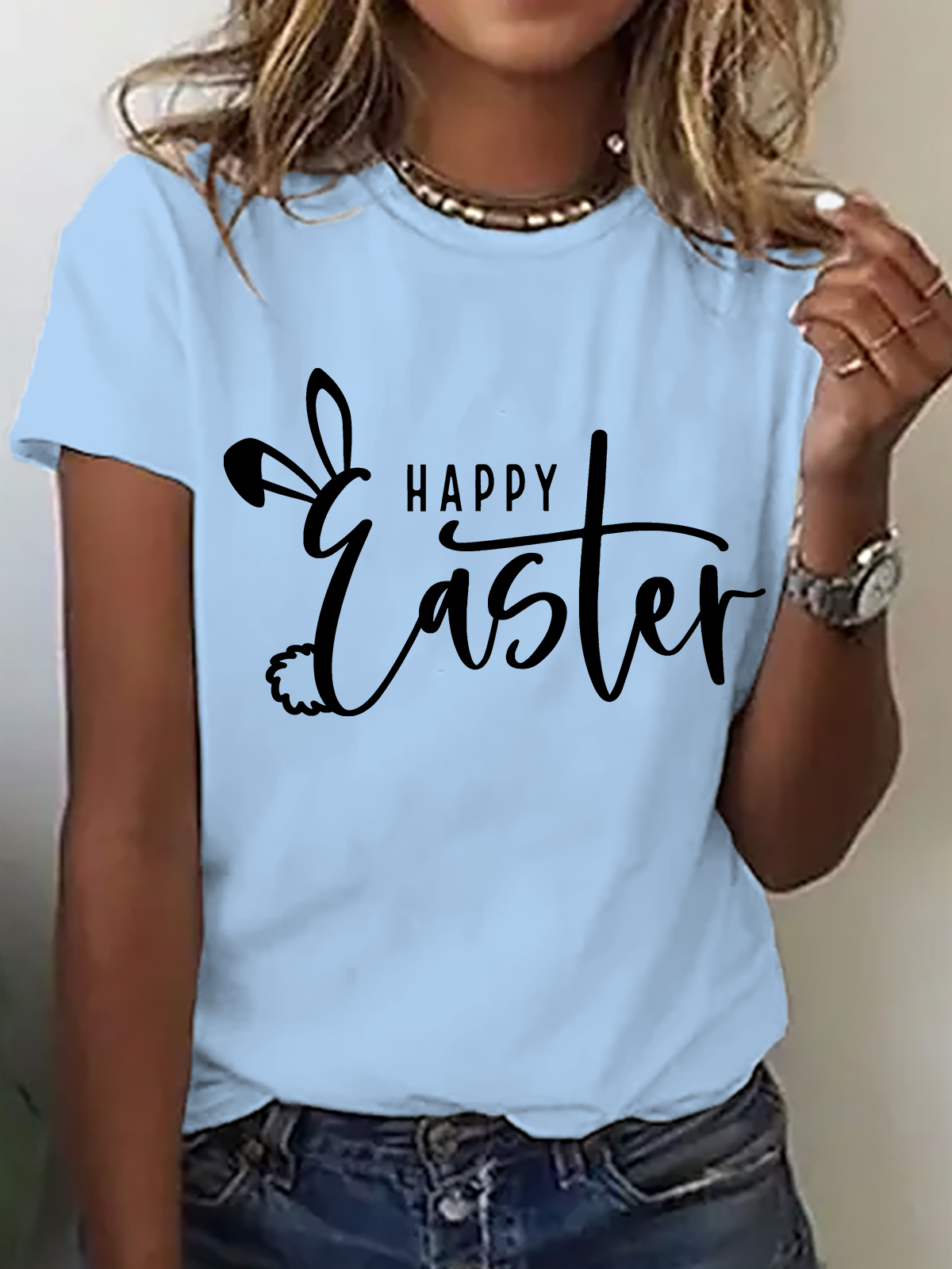 Women's Floral Easter Rabbit Loose Simple Crew Neck T-Shirt